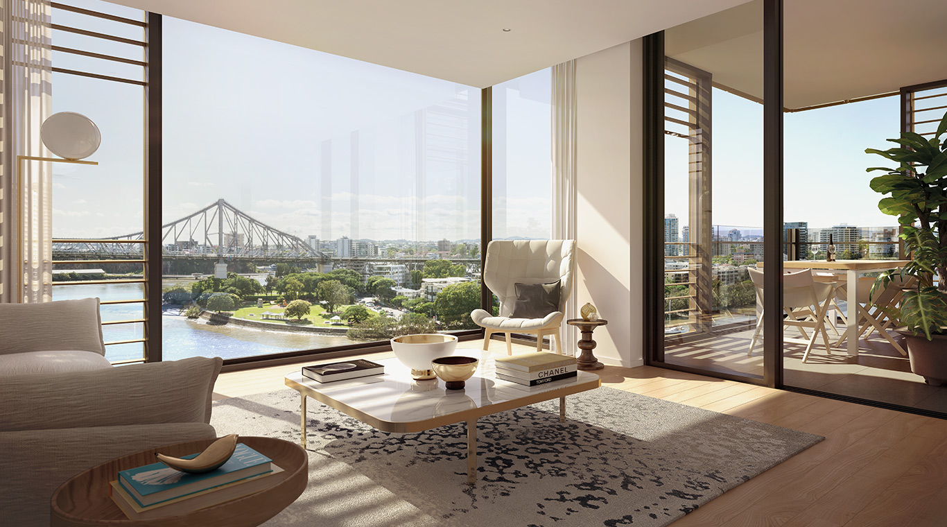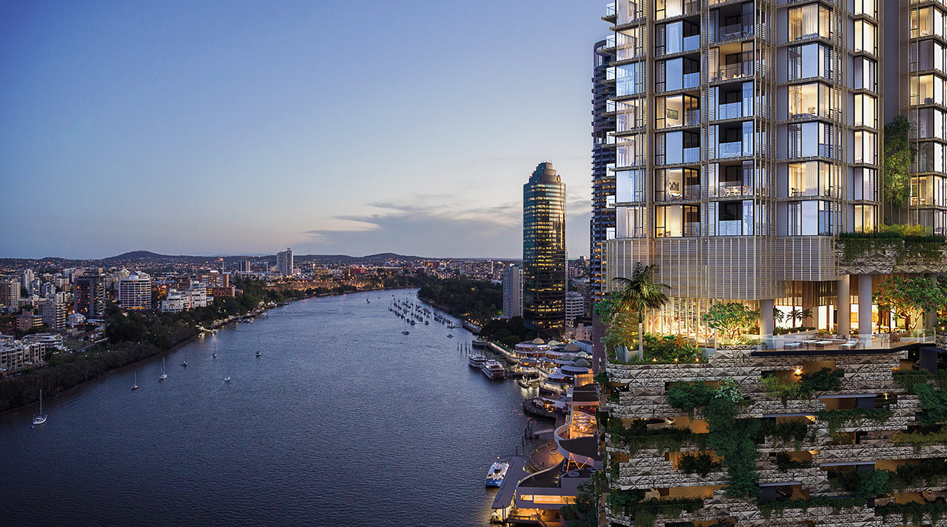 443 Queen Street is a new generation of design for subtropical living. This open, breathing building creates a memorable experience of the sky above, the river below and the paradise within.